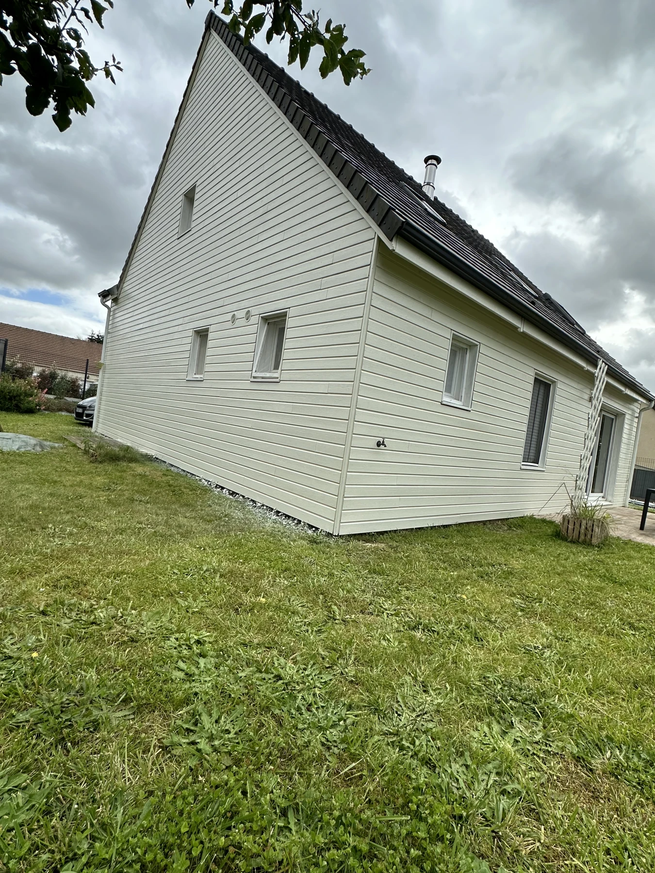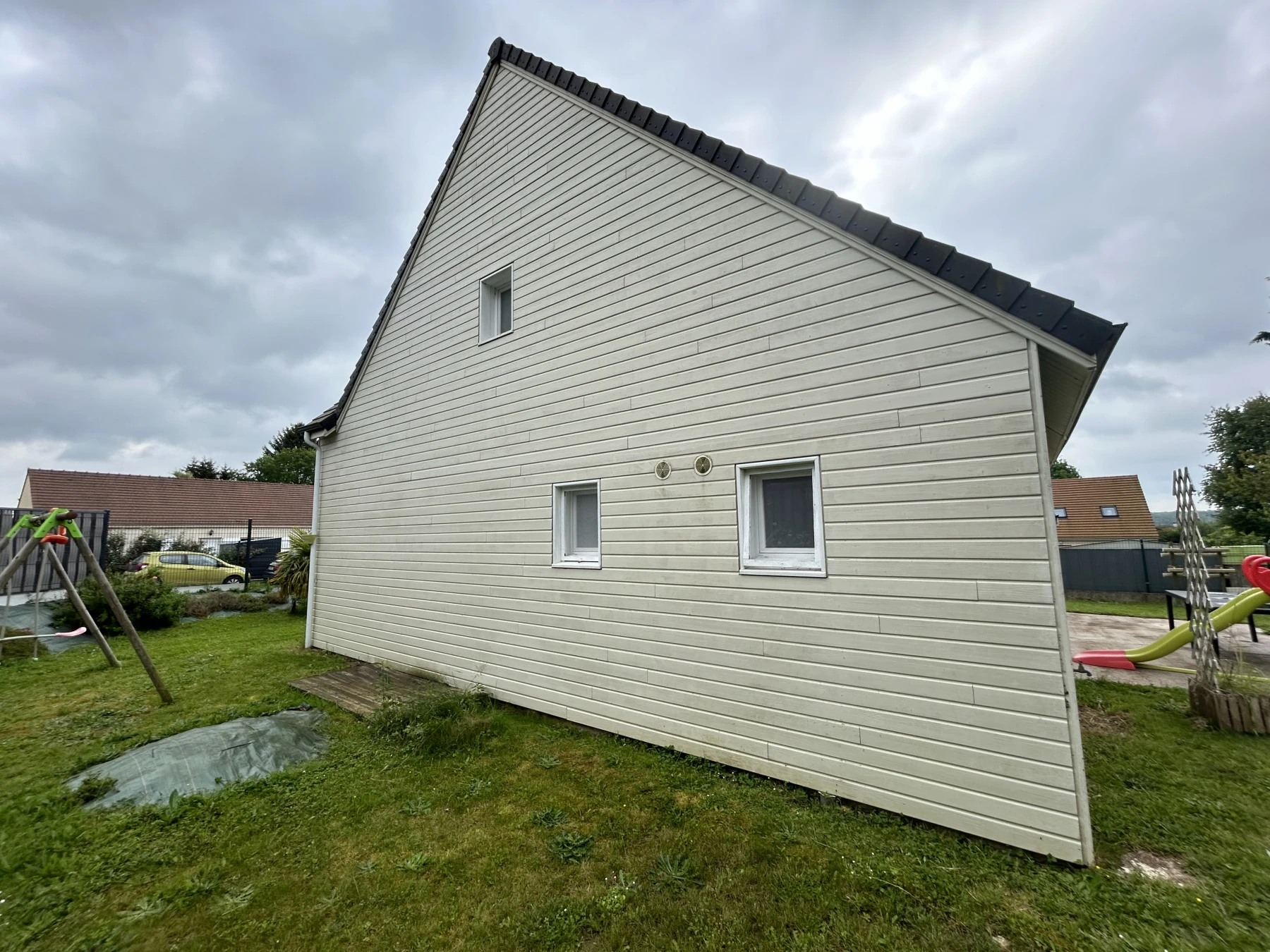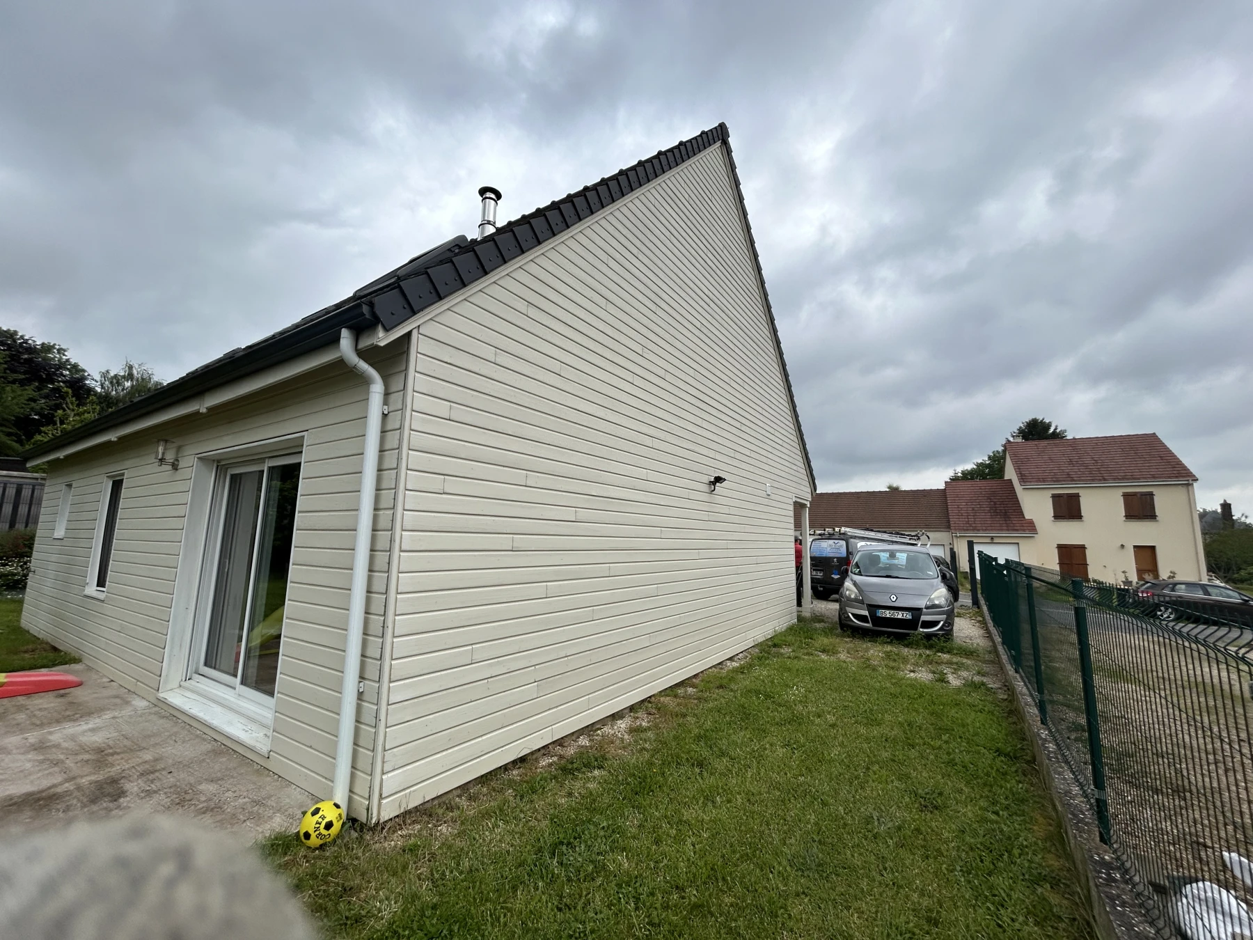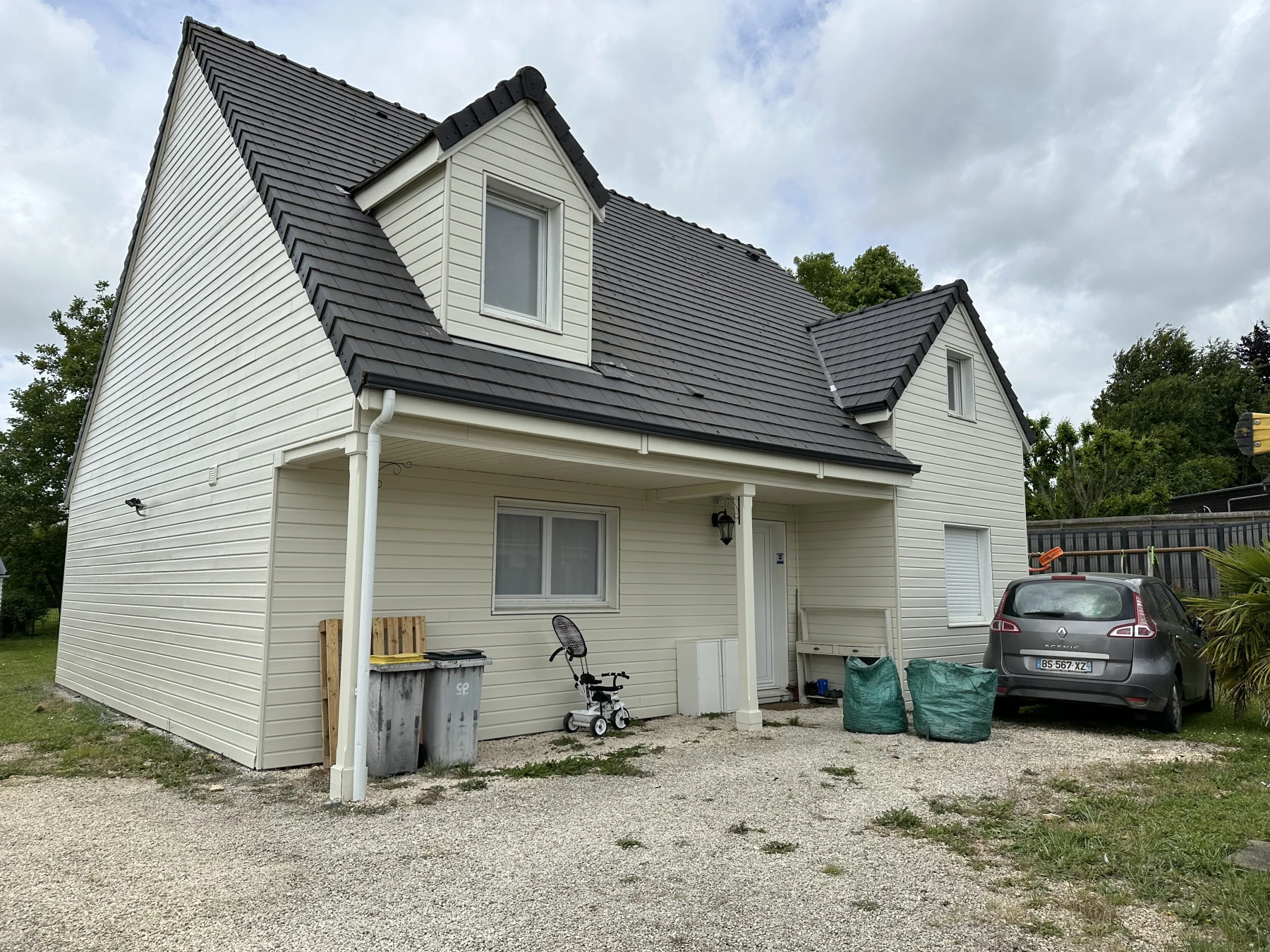Un avant apres d’une peinture Maison bardage, bois beige. nous avons appliqué la peinture À airless, avec une application de la première couche, puis application de la seconde couche quelques jours plus tard pour bien laisser sécher la première couche de peinture